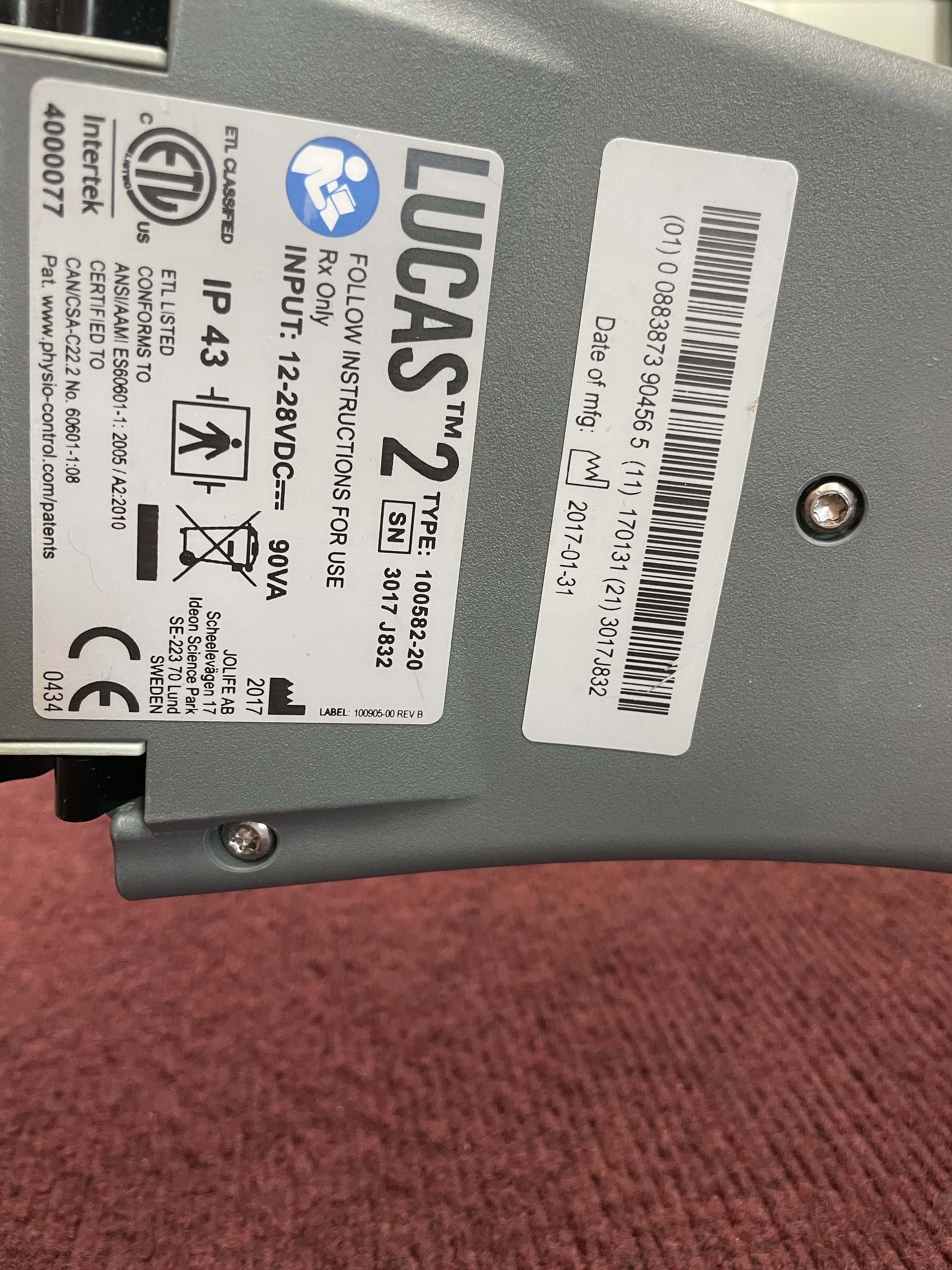 Lucas Chest Compression System – does not have back plate, in good condition and has been tested – Please see all pictures for more details.