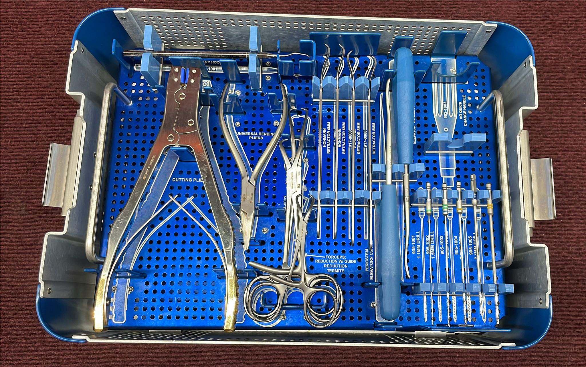 Set is mostly complete but missing 903-1003 instrument (see tray labeling). All other instruments pictured and included. Good used condition with visible signs of prior use. Sold as-is. Please see all pictures for more details and let us know if you have any questions.