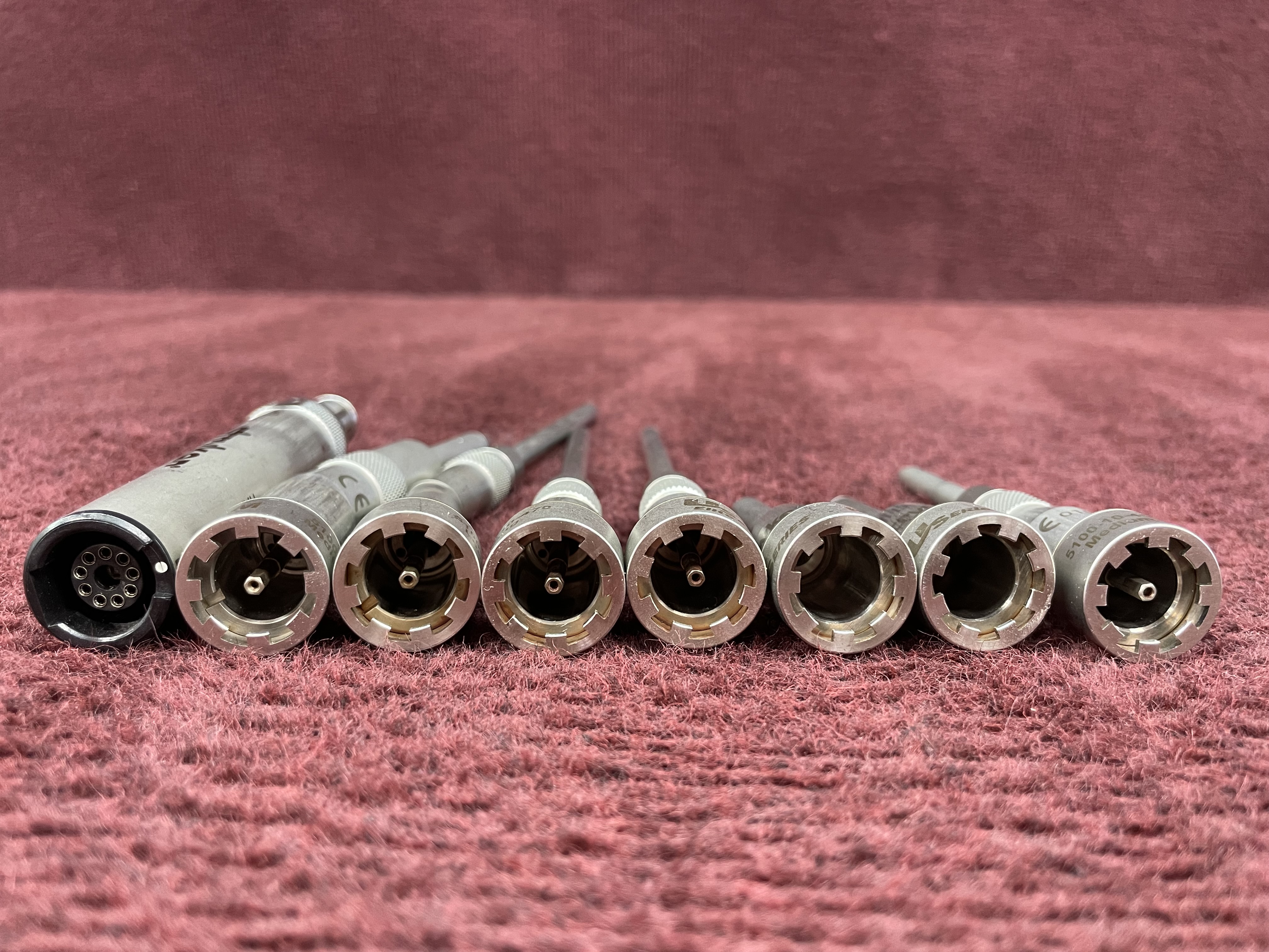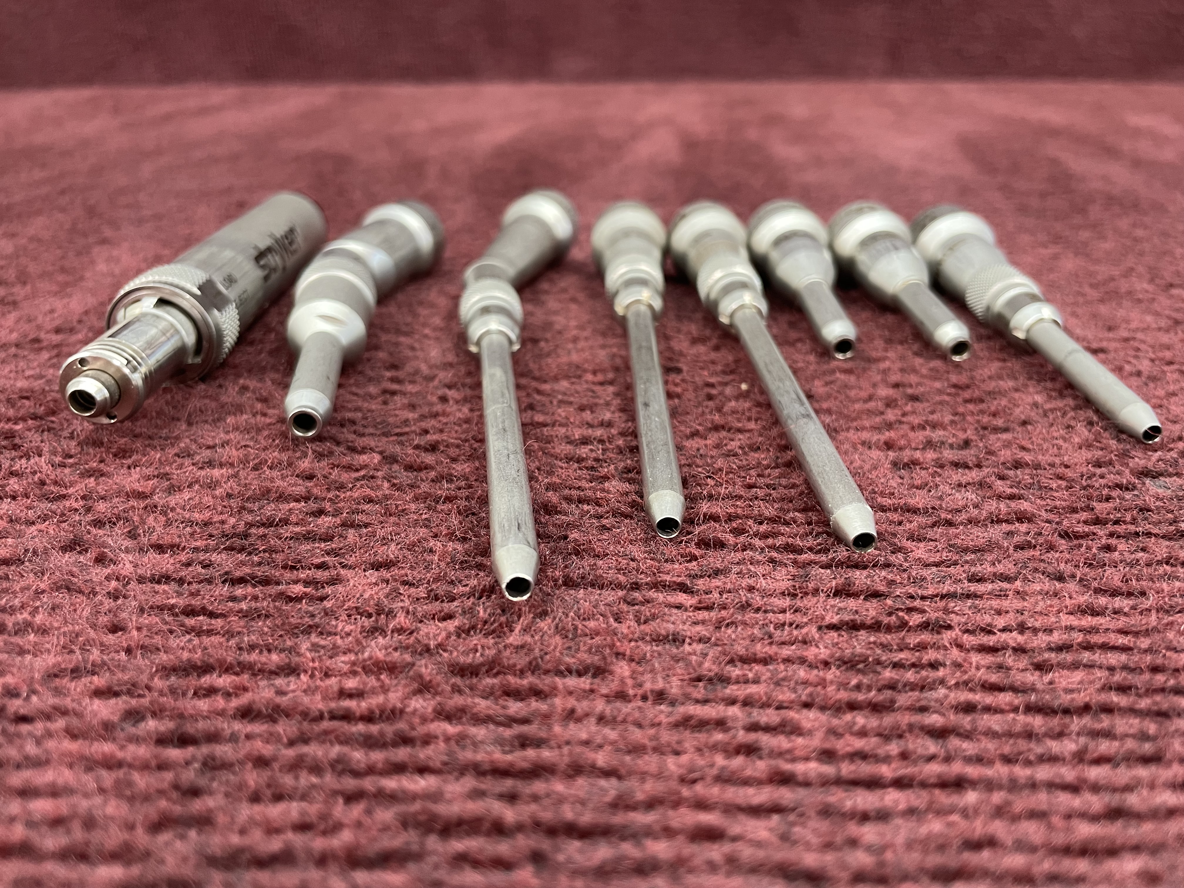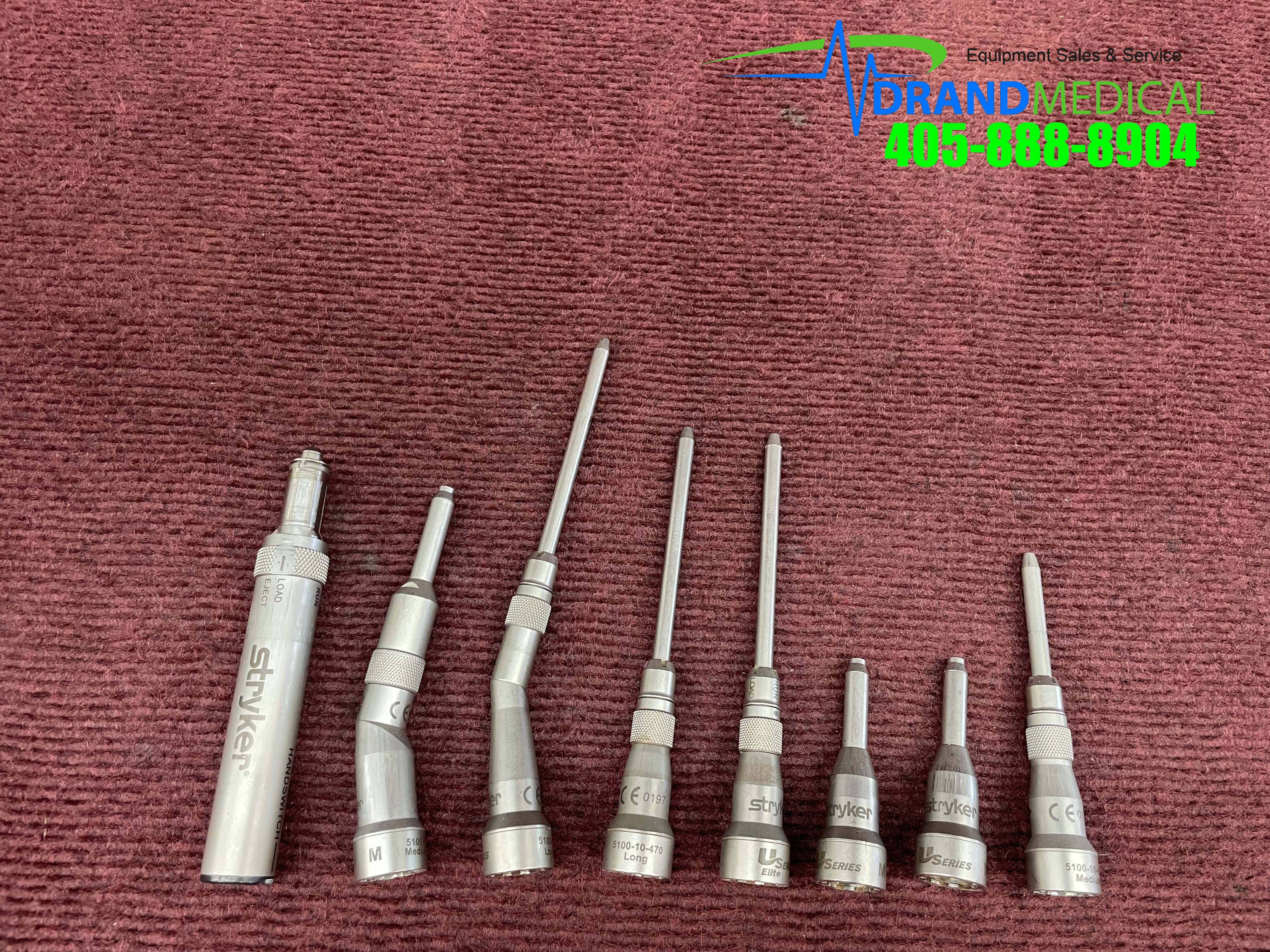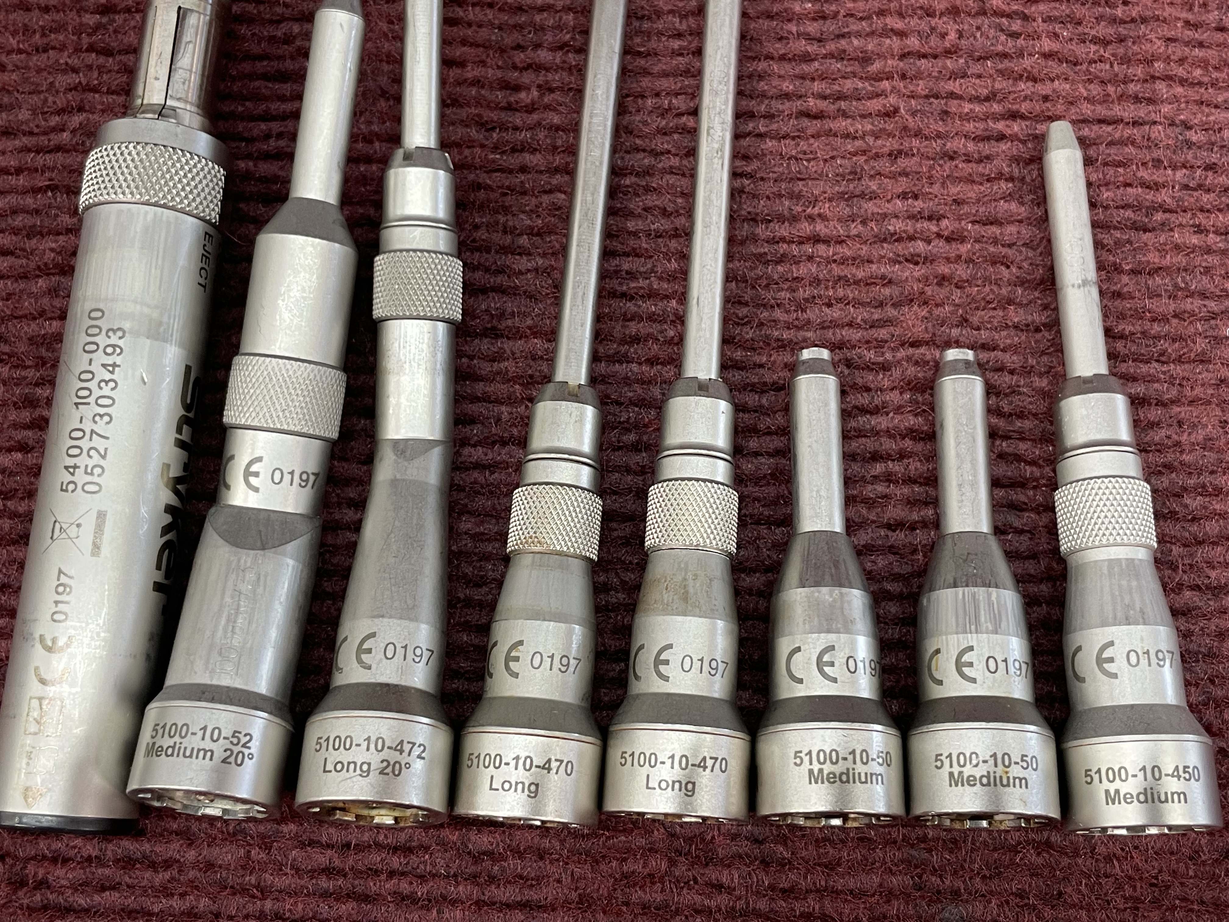 Stryker TPS Surgical Drill Set in good condition with minor blemishes (Please see all pictures for more details.) Model numbers for this set include: 5100-10-52 Medium 20°, 5100-10-450 Medium, 5100-10-50 Medium, 5100-10-472 Long °20, 5100-10-470 Long, 5400-100-000, 5100-10-470 Long, 5100-10-50 Medium. Includes Free Shipping!